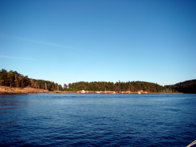 Two new beautiful wooden masts were installed, just recently, and a new mainsail is on its way. Today's cruise out into Bellingham Bay was without the new sail.